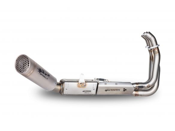 La prima importante sfida è stato lo studio di un kit completo omologato EURO5+, per una regolare circolazione su strada, in grado di incrementare le performance della moto, senza alcun intervento su mappa o centralina. La lunga esperienza di Spark sui motori 3 cilindri, ad esempio in Moto2, è stato indubbiamente un ottimo punto di partenza per dimensionare i collettori nel migliore dei modi e abbinarli poi ad un catalizzatore unico tra quelli proposti sul mercato, performante, con un numero di celle racing e una fortissima impregnazione.