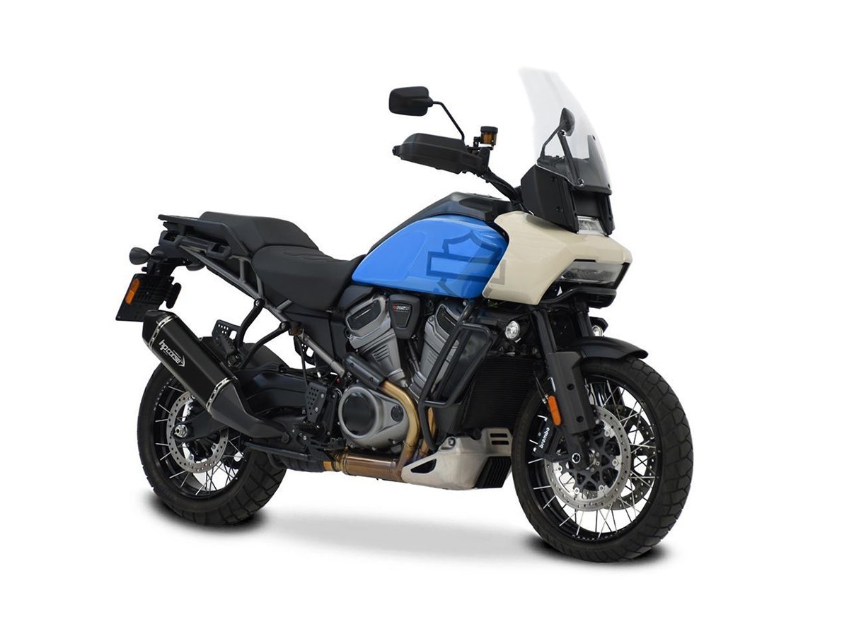 Lo scarico che HP Corse dedica alla Pan America è il modello SPS CARBON, uno scarico compatto e proporzionato, perfetto per la 1250 di Milwaukee.
