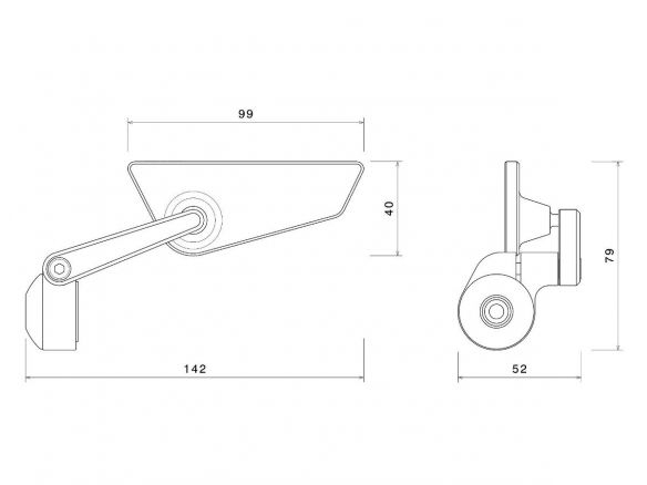 Il sistema di multiregolazione dell’asta insieme al sistema d’inclinazione della calotta permettono di montare lo specchio in alto oppure in basso rispetto al manubrio e